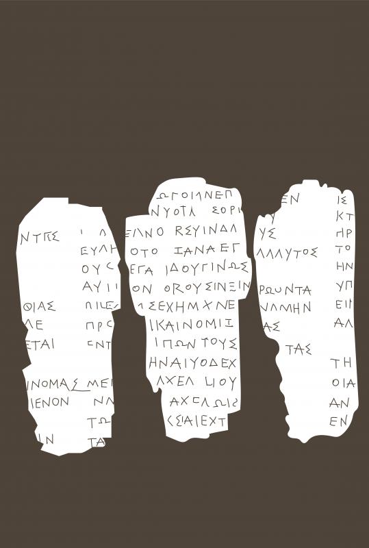 To exit, leave the Derveni Κrater behind you, go left and then right around the glass dividing panels, following the path of the exhibition. After the second turn on the right you come across a table-like display. In front of is the Derveni Papyrus.