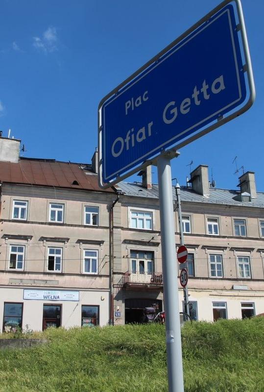 Exiting Kowalska Street and crossing Lubartowska Street, we reach Ghetto Victims Square (Plac Ofiar Getta), where the Monument to the Memory of the Ghetto Victims was unveiled in 1962. The monument is in the symbolic shape of a matzevah and bears a quote from “The Song of the Murdered Jewish People” by Yitzchak Katzenelson (1886-1944): “I am searching for my dead in every hill of ash”. Due to ongoing construction works in the square, the monument has been temporarily moved to Niecała Street. The monument is located close to the house at 3 Niecała Street, where the Jewish Humanities Gimnazjum and the Tarbut School were located before WWII, as well as one of the postwar shelters that helped Holocaust survivors begin life anew. The place comprised a night shelter, a school, a preschool and a day care centre. A sukkah, or a booth for the holiday of Sukkot, with removable roofing, can be seen at the nearby house at number 6.