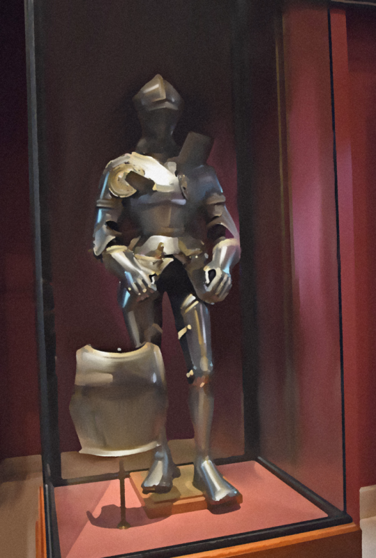 Proceed to the room’s opposite wall. In the centre, you will find our next stop: Charles V's full armour, known as the KD armour.