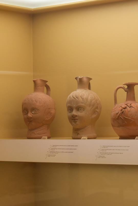 Just across the statue of juvenile Satyr, the terracotta vase in the form of a boy's head is presented.