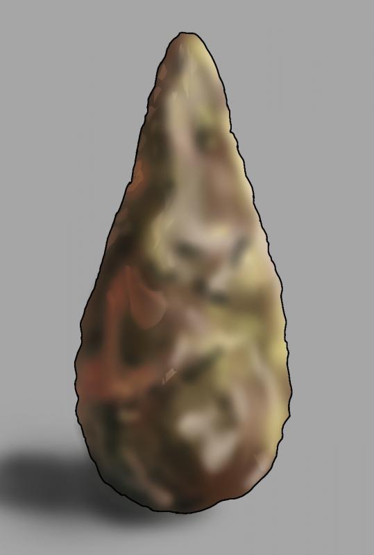 After passing the control, go straight through the first three introductory rooms of the museum. You will then enter a space divided by pillars that makes up rooms 4 and 5. Go straight ahead on the left side until you reach a showcase with an Australopithecus skeleton. Turn right and pass between the two pillars. Go forward to the next display case and when you reach it turn your left and you will see a display case with large bones. In the centre of that showcase, you will see a hand-axe, which is our first point of interest.