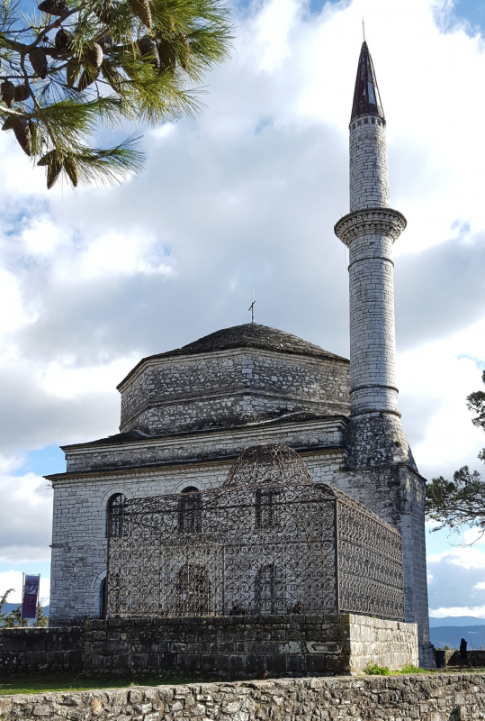 In the 13th century, the Cathedral of Taxiarch Michael is here. Two centuries later, the Turks arrive with their own religion. At first, they are discreet. They let Christians worship their God and build a wooden mejit, a place of prayer, not too far away. In 1611, however, Christians rebel without success and lose their privileges. They are thrown out of the Castle and the temple of Taxiarch is evacuated, while the mejit is reconstructed into a proper mosque. About two centuries later, Ali Pasha renovates it lavishly and discovers ruins of the Byzantine temple. It is possible that the two marble pieces which are decorated with flowers and are now in the michramb, that is to say the semicircular prayer niche, came from the iconostasis of the Christian temple.
