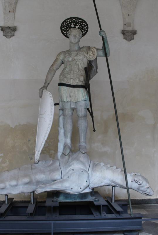 Having the giants’ staircase in front of you, turn left and head toward the roofed part of the walkway, where the statue of San Teodoro stands atop a crocodile ( no. 2 of the official audioguide).